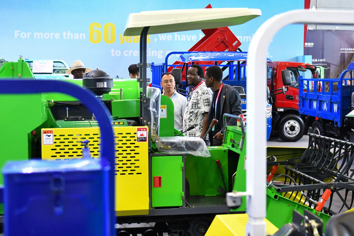2025年6月14日,觀眾在長沙國際會展中心參觀農(nóng)機設(shè)備。6月12日至15日,第四屆中國—非洲經(jīng)貿(mào)博覽會在湖南長沙舉行。新華社記者 陳振海 攝