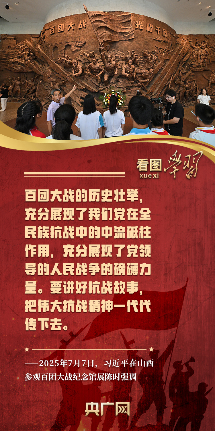“要講好抗戰(zhàn)故事,把偉大抗戰(zhàn)精神一代代傳下去?!秉h的十八大以來,習(xí)近平總書記在地方考察調(diào)研時,多次到具有重大歷史意義的革命圣地、紅色舊址、歷史紀(jì)念場所等緬懷革命先烈,重溫崢嶸歲月,深刻闡釋歷史啟迪。今年是中國人民抗日戰(zhàn)爭暨世界反法西斯戰(zhàn)爭勝利80周年,《看圖學(xué)習(xí)》邀您一起跟隨總書記的腳步,共同緬懷抗戰(zhàn)先烈的豐功偉績,繼承和弘揚(yáng)偉大抗戰(zhàn)精神,為強(qiáng)國建設(shè)、民族復(fù)興作出我們的新貢獻(xiàn)。