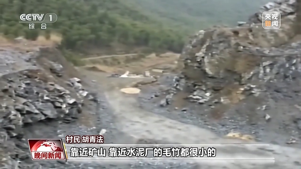 村民 胡青法:那片山都是灰蒙蒙的。那時(shí)候很明顯,靠近礦山、靠近水泥廠(chǎng)的毛竹,都很小的。