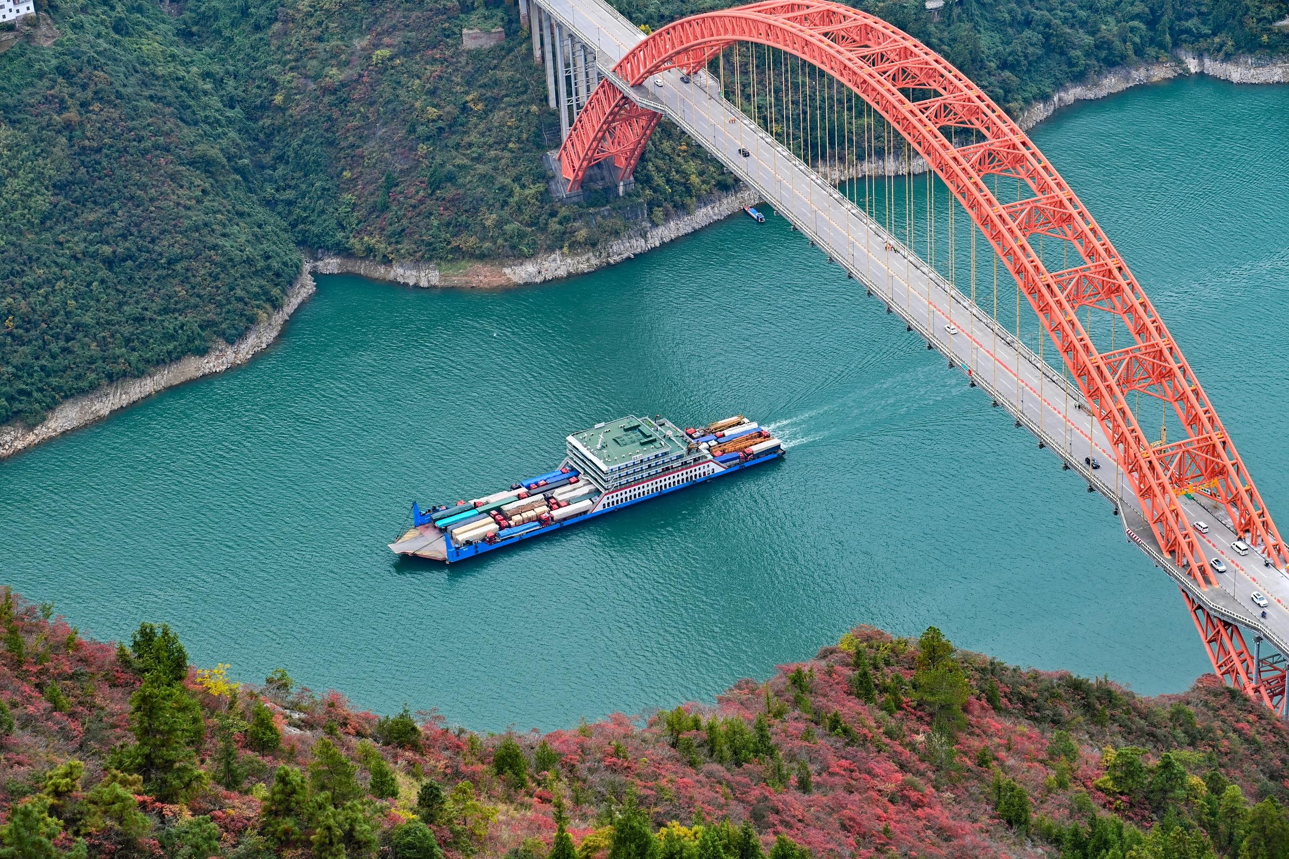 貨輪航行在長江巫峽段水域