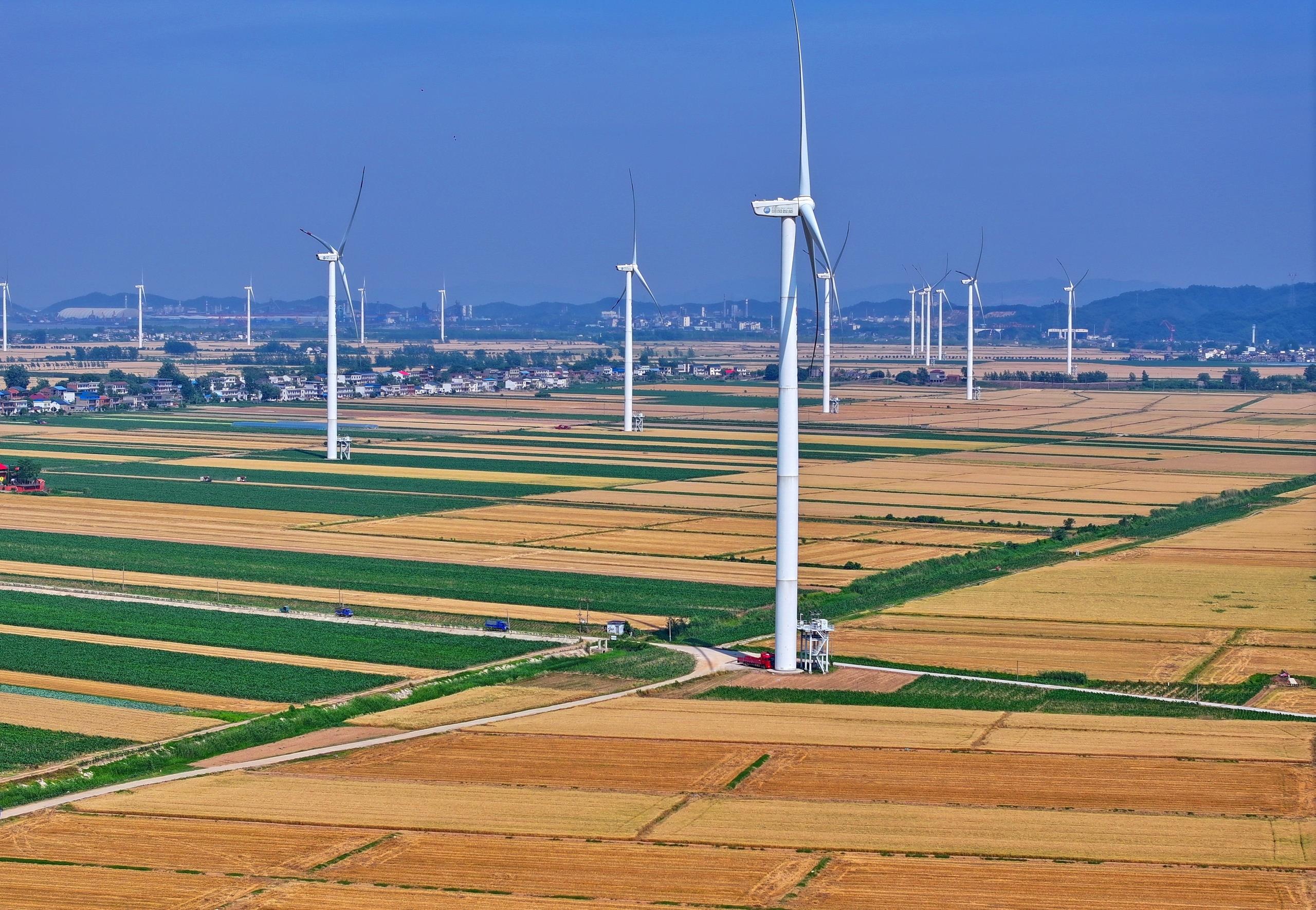 江西九江長江沿岸的風(fēng)力發(fā)電機(jī)