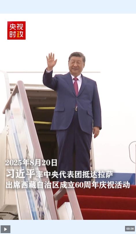 中共中央總書(shū)記、國(guó)家主席、中央軍委主席習(xí)近平率中央代表團(tuán)20日中午乘專(zhuān)機(jī)抵達(dá)拉薩,出席西藏自治區(qū)成立60周年慶?;顒?dòng)。