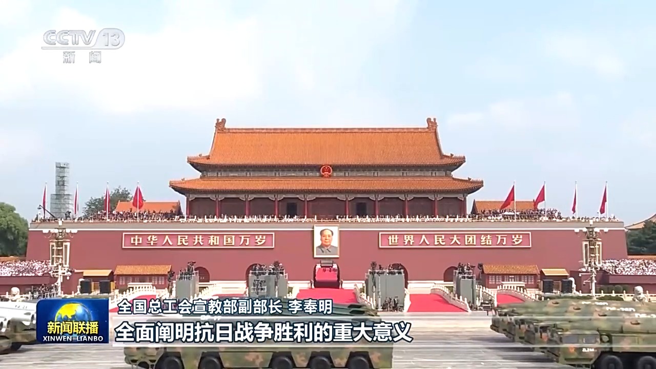 全國總工會宣教部副部長 李奉明:習(xí)近平總書記的重要講話,從全民族、全人類的高度,全面闡明抗日戰(zhàn)爭勝利的重大意義。莊嚴(yán)宣示中國人民維護世界和平與發(fā)展的堅定立場,我們深刻認(rèn)識到中國共產(chǎn)黨的中流砥柱作用是抗日戰(zhàn)爭勝利的關(guān)鍵。