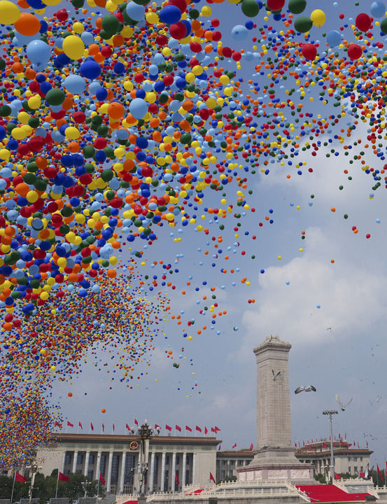2025年9月3日,紀念中國人民抗日戰(zhàn)爭暨世界反法西斯戰(zhàn)爭勝利80周年大會在北京隆重舉行。這是紀念大會現場放飛氣球和鴿子。新華社記者 牟宇 攝