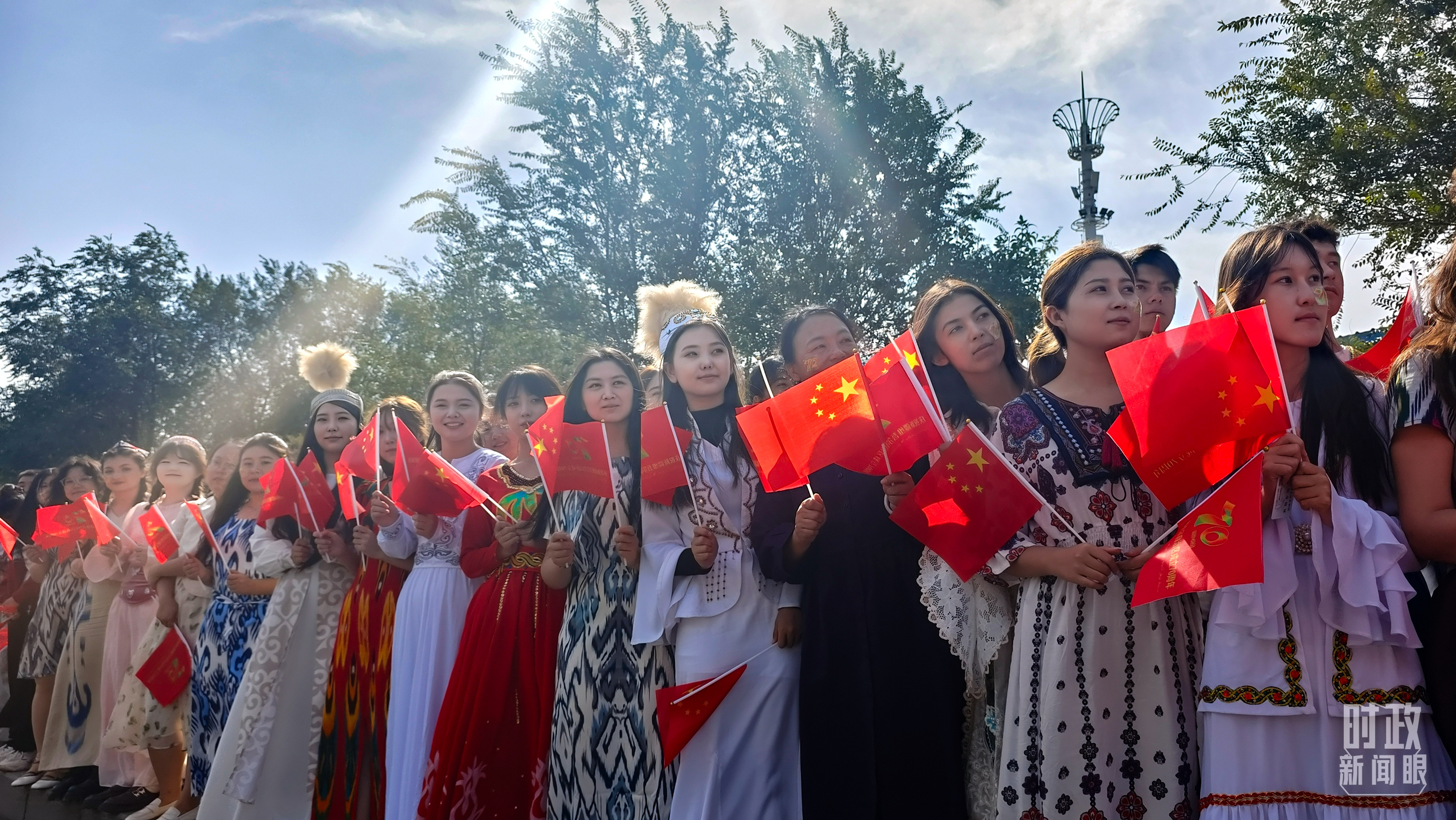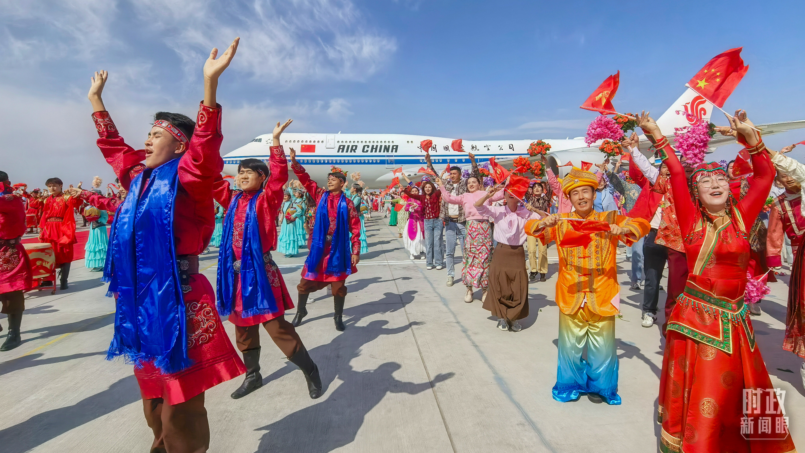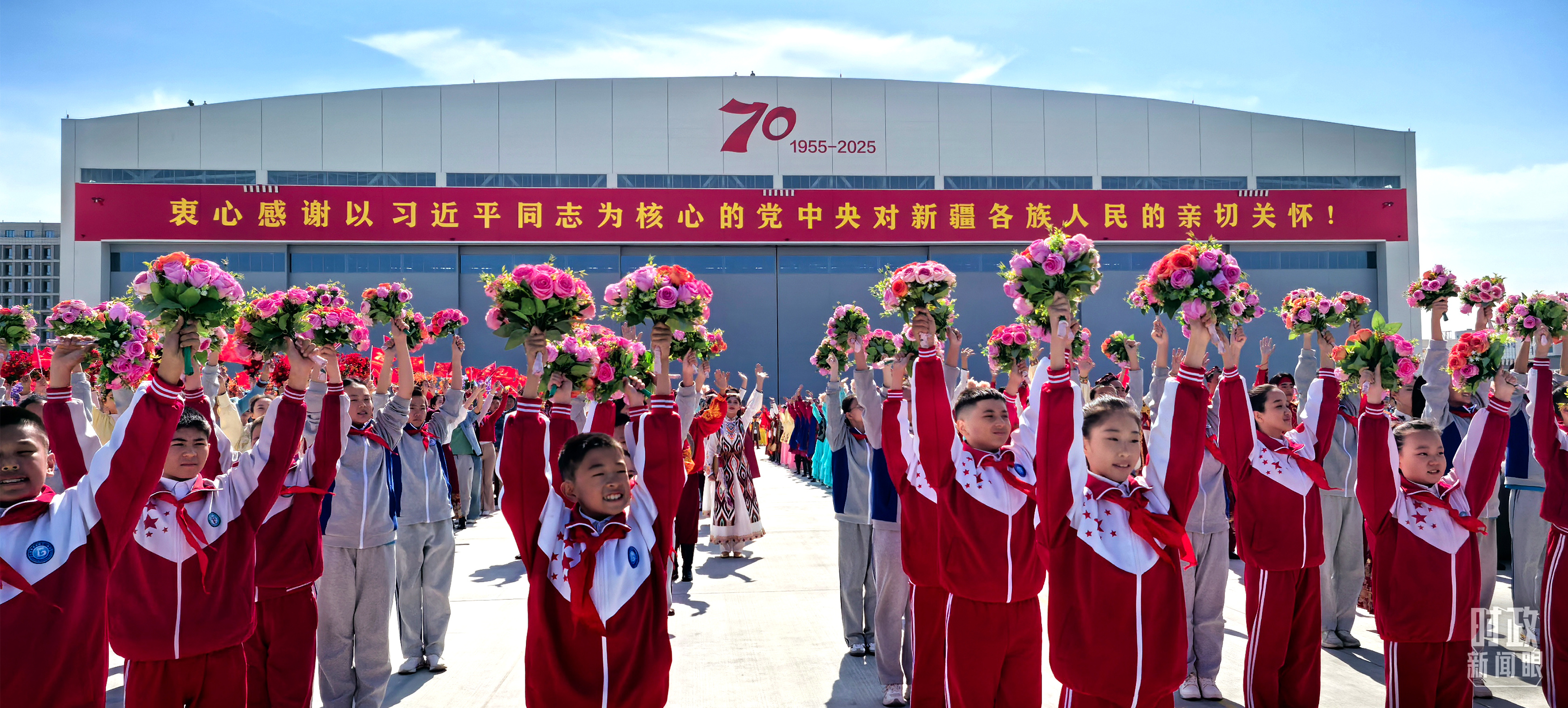 金秋時節(jié),晴空萬里。新疆各族群眾熱情迎接習(xí)近平總書記和中央代表團(tuán)的到來。
