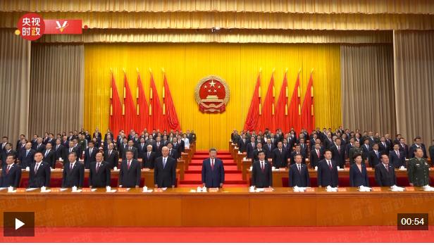 25日上午,新疆維吾爾自治區(qū)成立70周年慶祝大會在新疆人民會堂隆重舉行。現(xiàn)場全體起立,高唱國歌。