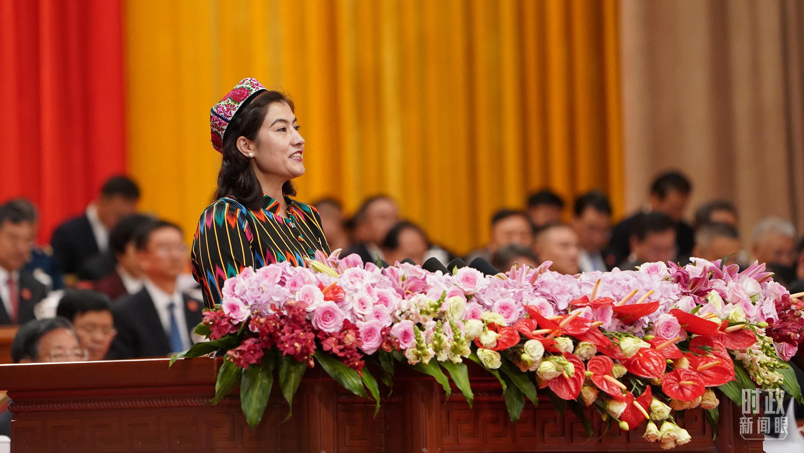 喀什地區(qū)巴楚縣童夢(mèng)幼兒園園長(zhǎng)艾米拉古麗·阿不都作為維吾爾族群眾代表發(fā)言。她曾見(jiàn)證了自己所在的幼兒園由低矮的土坯房變成標(biāo)準(zhǔn)化幼兒園,成為鄉(xiāng)村最漂亮的建筑。