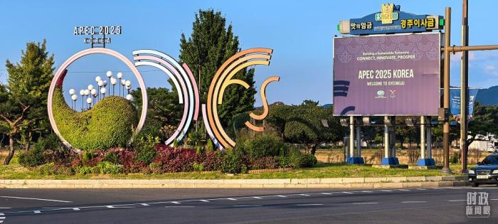 深秋時節(jié),千年古城慶州明凈如畫,街道兩側(cè)懸掛著APEC會議旗幟。亞太經(jīng)合組織(APEC)第三十二次領(lǐng)導(dǎo)人非正式會議即將在這里舉行。