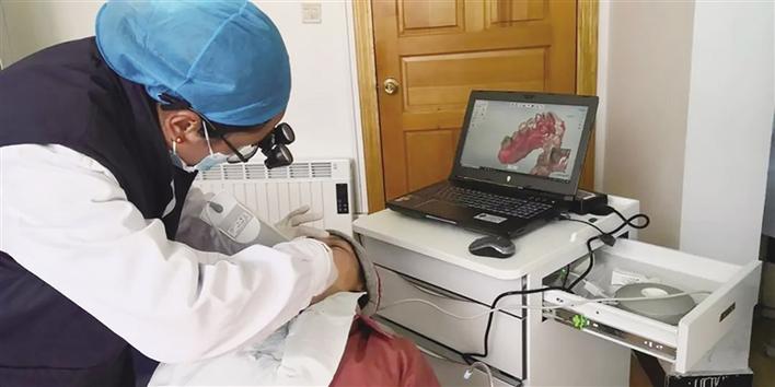 西藏自治區(qū)人民醫(yī)院口腔科醫(yī)生正在進(jìn)行口內(nèi)掃描操作。 圖由自治區(qū)人民醫(yī)院提供