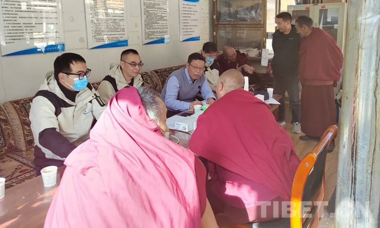 現(xiàn)場(chǎng)志愿服務(wù)隊(duì)員們?yōu)樯娐?tīng)診、量血壓、開(kāi)處方、提建議,并幫助他們預(yù)約檢查,聯(lián)系醫(yī)保局詳細(xì)解答醫(yī)保報(bào)銷問(wèn)題等。期間,隊(duì)員們還教會(huì)了每一位僧人使用電子血壓計(jì)監(jiān)測(cè)血壓,并向僧眾征集就診看病、醫(yī)療改革建議12條。義診結(jié)束時(shí),僧眾向志愿服務(wù)隊(duì)員們獻(xiàn)上哈達(dá)以示感謝。