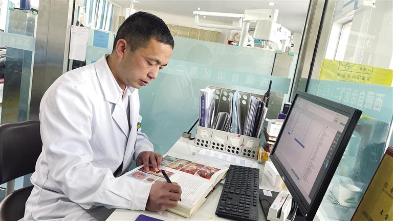 王雷在學(xué)習(xí)口腔專業(yè)知識。