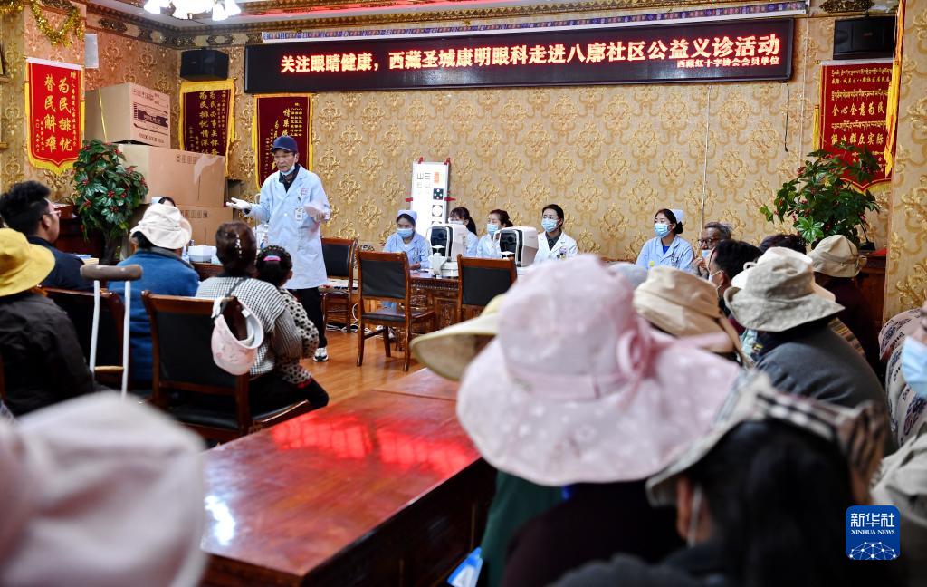 5月9日,醫(yī)務(wù)人員為八廓社區(qū)的居民開展眼科基礎(chǔ)知識(shí)講座。新華社記者 張汝鋒 攝