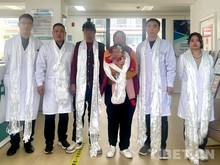 圖為醫(yī)療團(tuán)隊(duì)醫(yī)生與才巴央措及她的父母合影