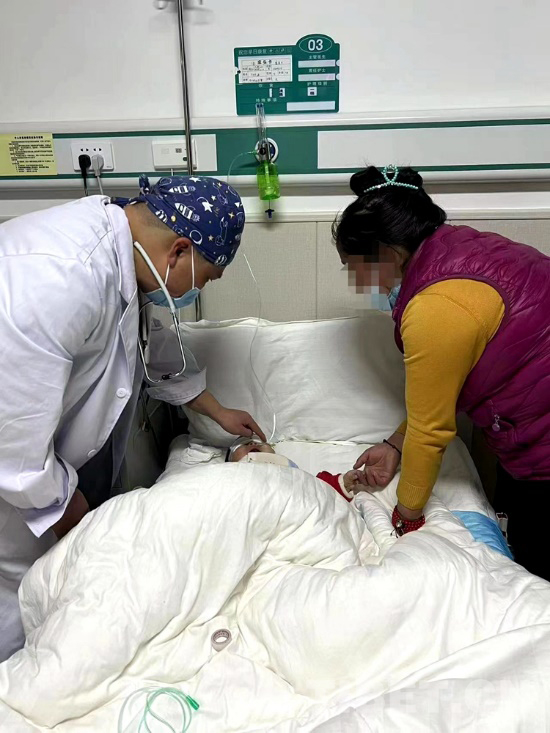手術(shù)順利結(jié)束,看著醫(yī)護(hù)人員把才巴央措從手術(shù)室推出來(lái),母親卓巴雙手合十并不停對(duì)著醫(yī)護(hù)人員說 “噶真切”“噶真切”,醫(yī)護(hù)人員也面帶欣慰的微笑,用一兩句簡(jiǎn)單的藏語(yǔ)回應(yīng)著卓巴,看著病床上熟睡的才巴央措,卓巴輕撫孩子臉頰哽咽落淚。