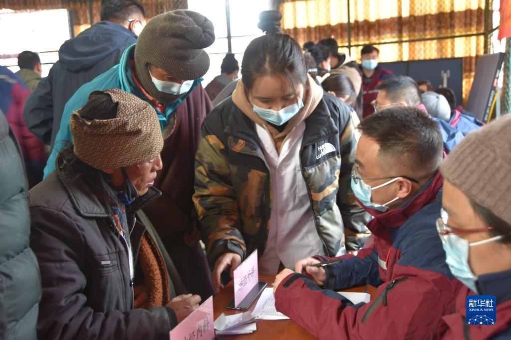 午后時分,天空仍然飄著小雪,來自北京援藏醫(yī)療隊(duì)的15名醫(yī)生剛下車,便馬不停蹄地開始工作。據(jù)援藏醫(yī)療隊(duì)醫(yī)務(wù)處處長趙萬全介紹,本次義診前,醫(yī)療隊(duì)已提前了解當(dāng)?shù)厝罕姷亩喟l(fā)病類型,攜帶了充足的降血壓、常用抗生素等藥品。與此同時,他們還為納木湖鄉(xiāng)群眾開展“分級診療”,“把脈”群眾的健康狀況,對群眾所患病癥的進(jìn)一步醫(yī)治給出相應(yīng)建議。