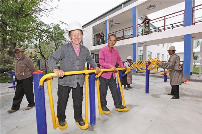 拉薩市城關區(qū)蔡公堂鄉(xiāng)敬老院老人在鍛煉身體。