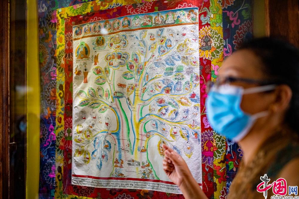 西藏藏醫(yī)藥大學(xué)開設(shè)特色鮮明的藏醫(yī)藥學(xué)唐卡教學(xué)課程?,F(xiàn)有醫(yī)學(xué)唐卡由十七世紀(jì)藏醫(yī)藥大家第司.桑杰嘉措創(chuàng)建,距今已有300多年的歷史。醫(yī)學(xué)唐卡用歸納、總結(jié)的方式將藏醫(yī)藥典籍《四部醫(yī)典》的主要內(nèi)容以“樹喻”方式繪示出來。成書于1300多年的《四部醫(yī)典》是藏醫(yī)藥學(xué)理論的根本大典。包括總則醫(yī)典、論述醫(yī)典、秘訣醫(yī)典和后續(xù)醫(yī)典。內(nèi)容涵蓋藏醫(yī)生理學(xué)、病理學(xué)、診斷學(xué)、治療學(xué)等基礎(chǔ)理論,細(xì)化了婦科、兒科、內(nèi)科、外傷等學(xué)科,包含了解剖學(xué)、護(hù)理學(xué)、藥學(xué)等眾多學(xué)科。圖為學(xué)校老師在對(duì)醫(yī)學(xué)唐卡進(jìn)行講解。中國(guó)網(wǎng)記者 鄭亮攝