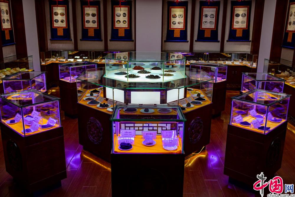學(xué)校目前在藏藥新藥研發(fā)方面正在進(jìn)行“四臣止咳液”、“降糖靈”、“清血康”等藏藥的研發(fā),同時(shí)研發(fā)出了藏藥牙膏、藏藥面膜等延伸產(chǎn)品。在藥材種植方面,積極開展了瀕危藏藥材的種植攻關(guān)工作,先后對(duì)喜馬拉雅紫茉莉、 船形烏頭、紅景天等瀕危藏藥通過項(xiàng)目進(jìn)行育苗、種植等。圖為西藏藏醫(yī)藥大學(xué)內(nèi)所陳列的藏藥標(biāo)本。中國(guó)網(wǎng)記者 鄭亮攝