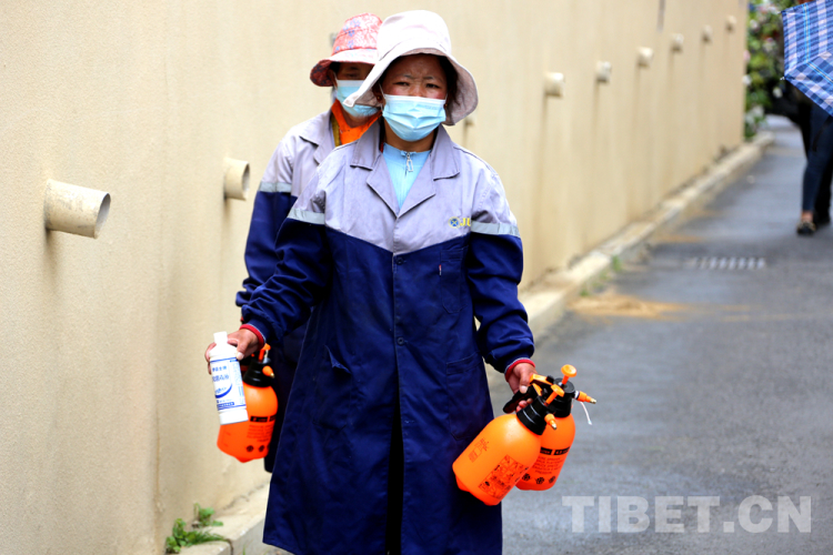 圖為保潔人員準(zhǔn)備對(duì)所在小區(qū)進(jìn)行消殺 攝影:王佳豪