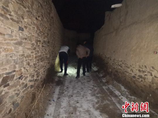 圖為青海省玉樹州稱多縣環(huán)境保護和林業(yè)局工作人員沿雪豹留下的腳印找尋蹤跡。 鐘欣 攝