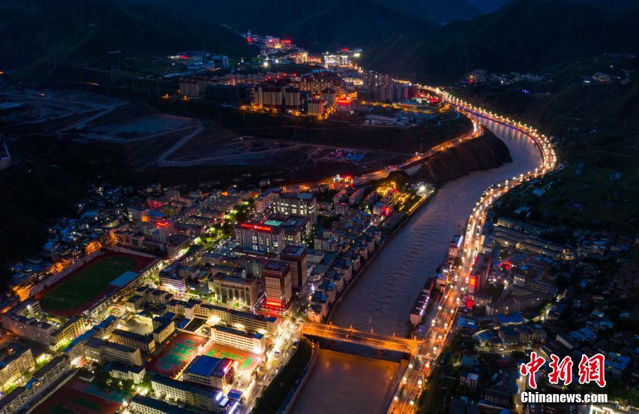 圖為7月29日,俯瞰夜幕下的昌都市區(qū)。中新社記者 何蓬磊 攝