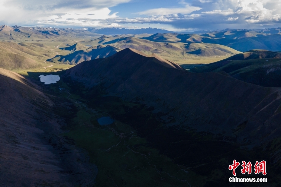 6月23日,思金拉措湖邊高原山脈風(fēng)光。思金拉措位于西藏墨竹工卡縣日多鄉(xiāng),海拔4500多米,周邊群峰簇?fù)?,地形猶如聚寶盤,不少民眾將其稱為西藏的“財(cái)神湖”。(無(wú)人機(jī)照片) 中新社記者 江飛波 攝