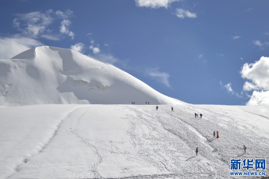 圖為游客攀爬廓瓊崗日冰川(9月14日攝)。新華網(wǎng) 貢桑央吉 攝(實習生)