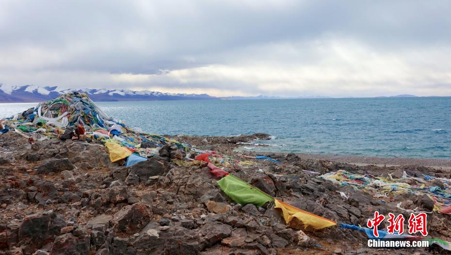 圖為納木錯(cuò)湖邊的經(jīng)幡。冉文娟 攝