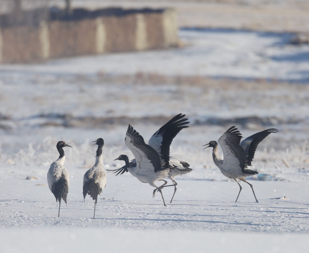 黑頸鶴是國家一級保護(hù)動物。近年來,隨著當(dāng)?shù)厣鷳B(tài)保護(hù)力度越來越大,每年11月前后至次年3月底,來林周縣越冬的候鳥越來越多。為保護(hù)黑頸鶴,林周縣出臺系列措施,專門設(shè)立多個定期投食點(diǎn),安排專人投撒青稞、小麥等黑頸鶴所需食物;成立巡護(hù)隊,嚴(yán)格實(shí)行24小時巡護(hù)制度。
