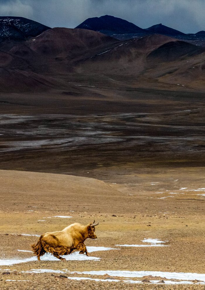 日土縣境內(nèi)國(guó)道216旁野牦牛。
