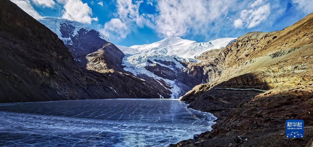 這是崗布錯結(jié)冰的湖面(1月1日攝)。新華社記者 姜帆 攝