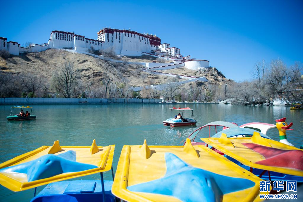3月15日,位于布達(dá)拉宮腳下的宗角祿康公園內(nèi),游客在乘船游玩。新華網(wǎng) 旦增努布 攝