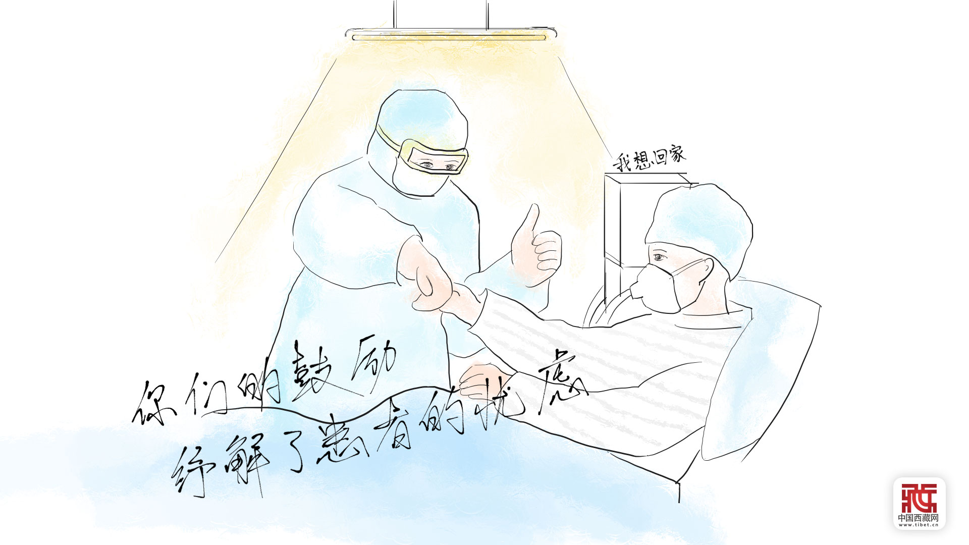 我們用畫(huà)筆記錄下感人的瞬間:戰(zhàn)“疫”前,戰(zhàn)“疫”者們無(wú)聲的誓言;確診時(shí),病人的憂(yōu)慮;急救中,關(guān)心和愛(ài)護(hù)、責(zé)任與擔(dān)當(dāng);出院后,感動(dòng)和溫暖……讓我們向所有奮戰(zhàn)在抗疫前線(xiàn)的醫(yī)務(wù)工作者表示衷心的感謝,用繪畫(huà)致敬抗疫英雄!(中國(guó)西藏網(wǎng) 文/王智霖 圖/蘇洋)