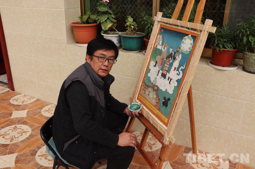 家住在西藏自治區(qū)堆龍德慶區(qū)乃瓊村的旦巴云丹是一名唐卡畫(huà)師。他師從國(guó)家級(jí)非遺傳承人、勉唐派唐卡大師丹巴繞旦,如今,已繪制唐卡30余年。新冠肺炎疫情發(fā)生以來(lái),旦巴云丹從手機(jī)、電視等多個(gè)渠道密切關(guān)注疫情情況,這也讓他謀生出繪制戰(zhàn)“疫”主題唐卡的想法。