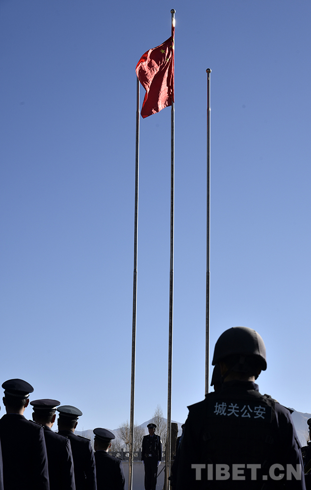 中國西藏網(wǎng)訊 伴隨著洪亮的國歌聲,一面五星紅旗冉冉升起。1月1日上午,西藏自治區(qū)拉薩市公安局城關(guān)公安分局納金派出所及轄區(qū)內(nèi)百余名群眾著盛裝齊聚一堂,舉行升國旗、慶元旦、喜迎“中國人民警察節(jié)”活動(dòng)。