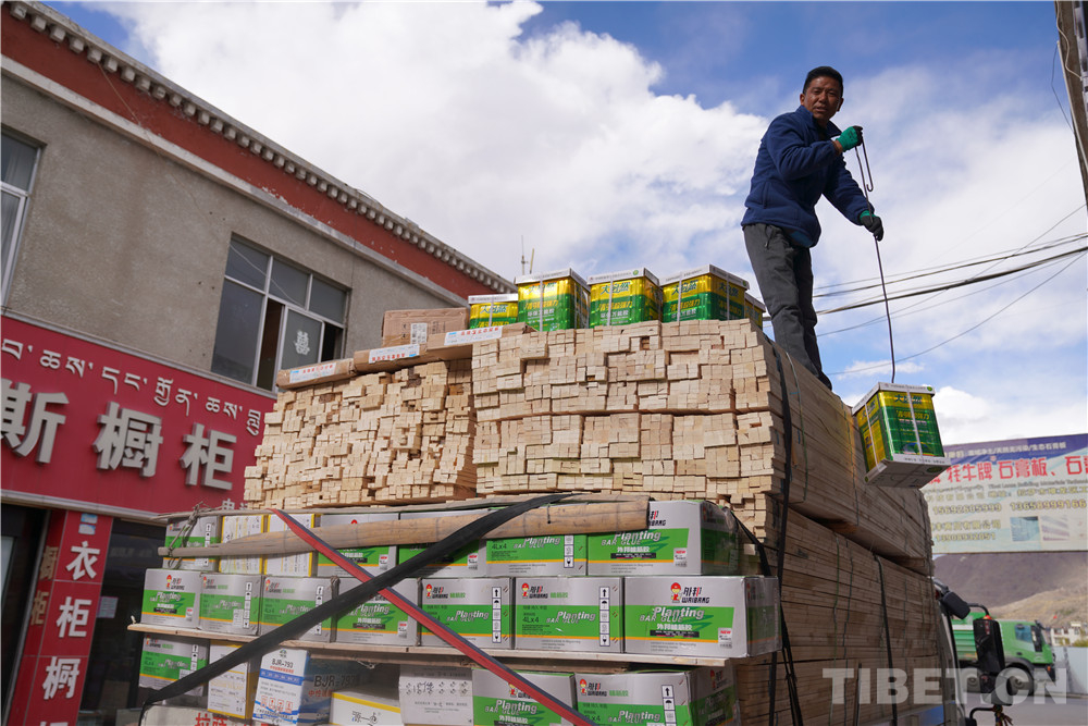 圖為尼瑪從車上卸貨中