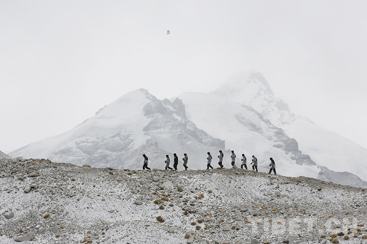 圖為民警們在珠穆朗瑪峰核心區(qū)域巡邏結(jié)束后返回 攝影:彭維熙