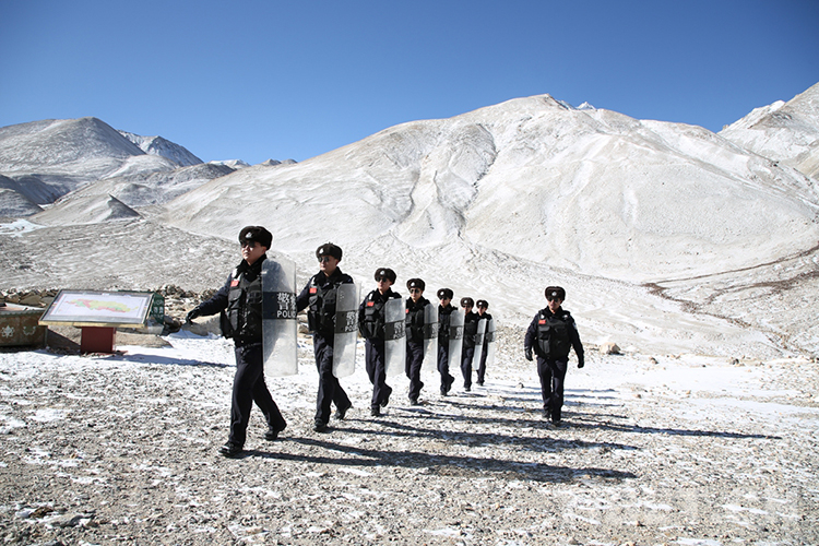 圖為王蘭波帶隊巡邏珠穆朗瑪峰核心景區(qū) 攝影:彭維熙