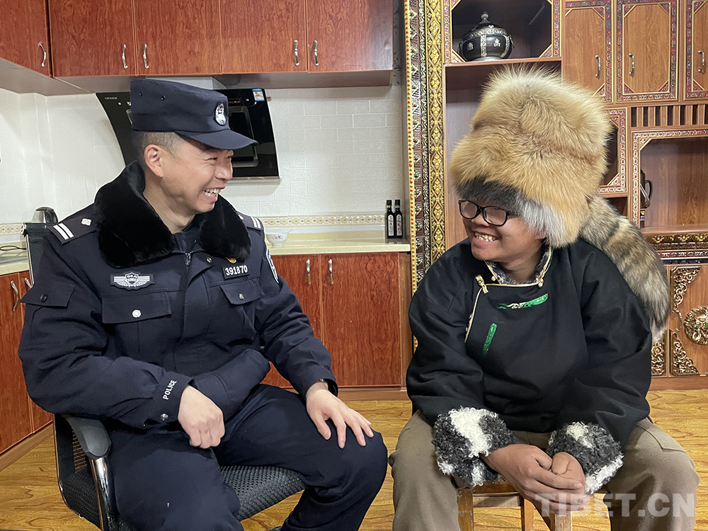 凜冽的寒風擋不住民警的暖心祝福,拉姆老阿媽開心地連連點頭。坐在院子里,走訪民警與老阿媽拉起了家常。“孩子,今年過年不回家嗎?”“老阿媽,這里就是我們的家,我們選擇堅守在這里,轄區(qū)群眾就是我們的家人。”民警韓其辰微笑地說道。民警們詢問了老阿媽近段時間的生活狀況,傾聽了老阿媽的所盼、所想、所需,并叮囑老阿媽要多保重身體,老有所樂、健康長壽、安享晚年。這一刻,“警情”是關愛與叮囑。