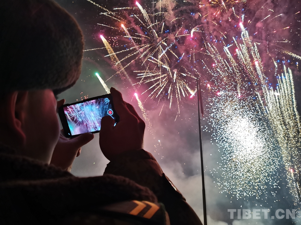 圖為駐藏部隊官兵錄一段煙花秀,分享給父母,說一聲:“爸,媽,我想你們了!” 攝影:牛玉壯