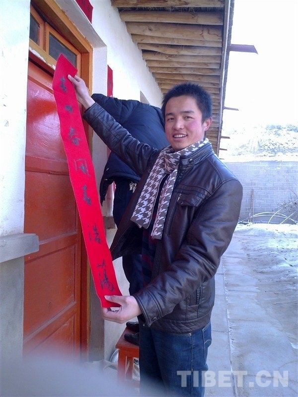 圖為身著藏族服飾的王卿龍?jiān)谖鞑剡^(guò)年