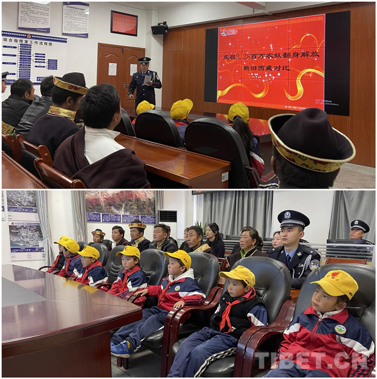 儀式結(jié)束后,派出所邀請(qǐng)學(xué)校師生及群眾代表參觀警營(yíng),民警貢秋羅布還為學(xué)生們上了一堂生動(dòng)的西藏百萬(wàn)農(nóng)奴解放歷史課,講解了西藏百萬(wàn)農(nóng)奴在中國(guó)共產(chǎn)黨的帶領(lǐng)下,打破政教合一的封建農(nóng)奴制的枷鎖;講述了短短幾十年跨越上千年的社會(huì)主義新西藏的發(fā)展奇跡。課后,小學(xué)生多吉說(shuō),“從這堂課里,知道以前的小孩多么可憐,現(xiàn)在我們有了警察叔叔和老師們的幫助,一定要好好學(xué)習(xí),長(zhǎng)大以后報(bào)效祖國(guó)?!?/p>