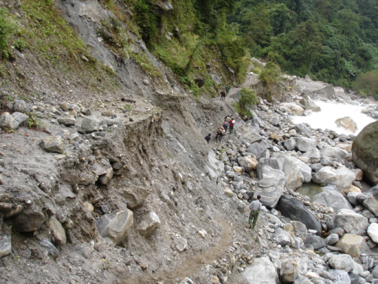 本世紀(jì)初,墨脫的通鄉(xiāng)道路即狹窄又陡峭,沒(méi)有防護(hù)措施,僅靠騾馬和人力通行。