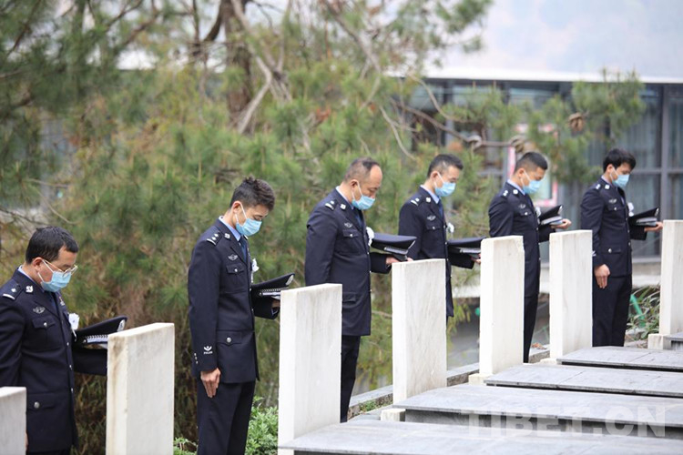 “因?yàn)槲覀冇颜x橋執(zhí)勤點(diǎn)處于疫情防控一線,我們沒有到烈士陵園實(shí)地打掃,今年的祭掃改為網(wǎng)絡(luò)祭掃,民警們通過國家公祭網(wǎng)祭掃通道開展‘追思?xì)v史、忠誠履職’活動(dòng)?!痹撜居颜x橋執(zhí)勤點(diǎn)黨支部副書記尼瑪云丹說。