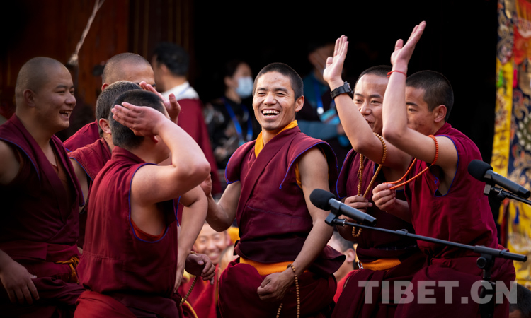 圖為西藏自治區(qū)2021年度藏傳佛教學(xué)經(jīng)僧人考核晉升格西拉讓巴學(xué)位立宗答辯暨頒證儀式現(xiàn)場(chǎng) 攝影:趙耀