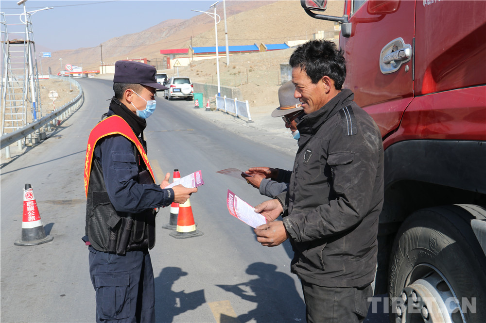 “12339,是國家安全機關受理公民和組織舉報電話。這條熱線是由國家安全部設立的,為了方便公民組織向國家安全機關舉報行為或線索?!痹谖鞑厝湛t市的街頭,日喀則邊境管理支隊民警達娃卓嘎為過往群眾講解“全民國家安全日”的相關知識。