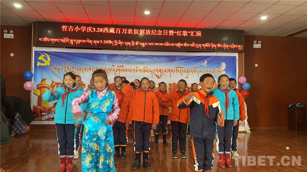圖為措美縣哲古小學(xué)開(kāi)展“學(xué)黨史、鑄師魂、育新人”系列活動(dòng)。措美縣供圖