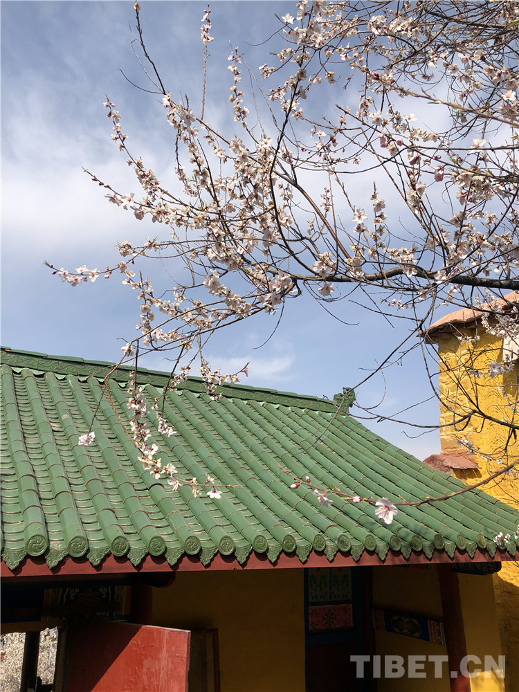 這段碑文充分表明了,清朝中央政權(quán)對西藏地方的守護(hù)和管理。也表現(xiàn)出建廟立碑者大將軍??蛋驳男亟蠛蜌馄?。在看碑文時(shí),腦子里浮現(xiàn)出那場發(fā)生在18世紀(jì)的戰(zhàn)爭,清朝大將軍??蛋猜暑I(lǐng)滿漢蒙藏各民族組成的騎兵,刀劍相錯(cuò)、血雨腥風(fēng)的畫面。一抬頭,廟中院子里卻靜謐異常,只有那株開滿花的桃樹,散落幾片花瓣,似乎在隨我一同追憶和祭奠這段歷史中的高光時(shí)刻。這段歷史中充滿了各種有益于我們這個(gè)時(shí)代的精神內(nèi)核,不畏艱險(xiǎn)保家衛(wèi)國、各民族兄弟同仇敵愾、對共同民族英雄的認(rèn)可等,這些都凝聚在這個(gè)安靜的上午,這座名字很獨(dú)特的小廟之中。抬起頭,從關(guān)帝廟的正門,往外望去,整個(gè)拉薩城充滿活力和現(xiàn)代氣息地展現(xiàn)在眼前,這座寺廟的靜謐似乎正像廟中供奉的兩位英雄一樣,默默地守護(hù)著這座城市的煙火氣息。