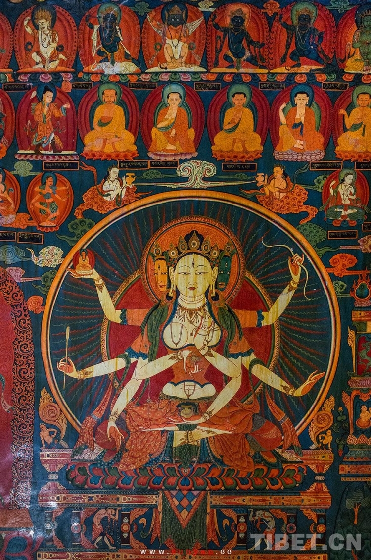 古格王朝遺址遺存數(shù)量最多、最為完整的是它的壁畫,古格壁畫氣勢宏大、風(fēng)格獨特,由于所處地理位置及受多種外來文化的影響,古格壁畫帶有明顯的克什米爾特點。