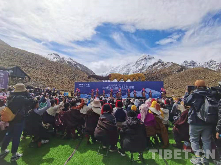 當(dāng)日,村民們?cè)缭鐏淼侥匪{(lán)雪山下,等候著開幕式的開始。開幕式上,大家觀賞了《脫貧之路》《幸福生活》《輪回圣水》及《歡樂的當(dāng)雄草原》等精彩表演。